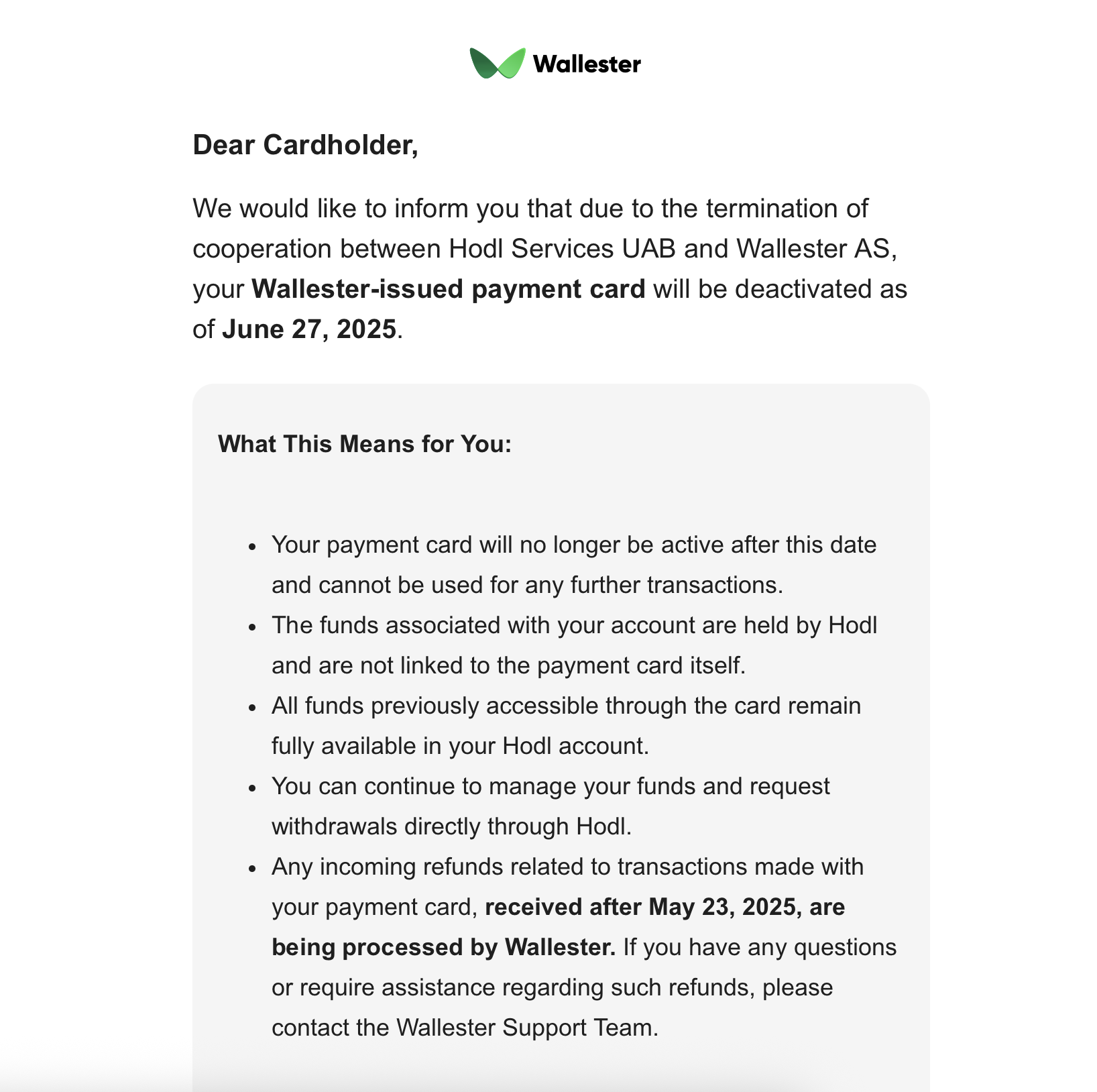 | Card Issuer | Wallester |