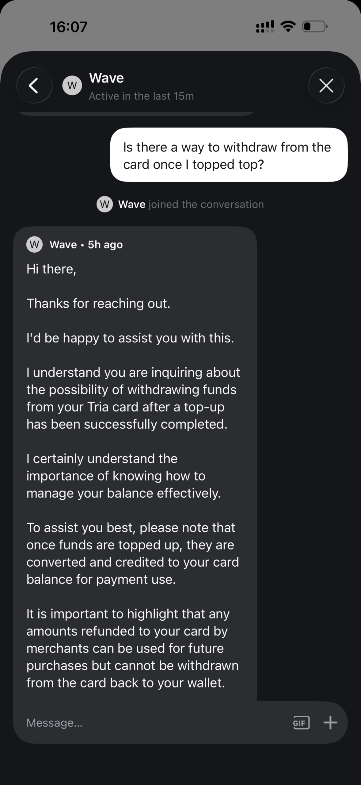 - Can't unload the card once topped up