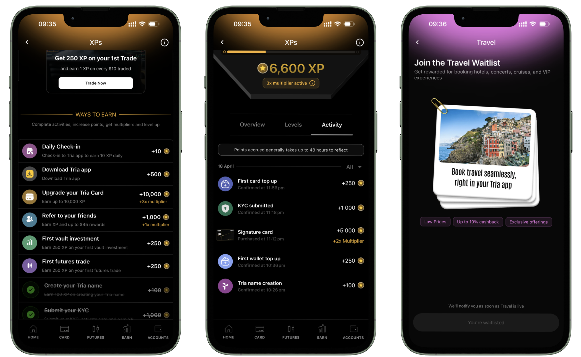 XP Points help you unlock higher levels, better multipliers, seasonal rewards, and other Tria perks. They do not have a fixed cash value, they are loyalty points that bring you extra benefits over time.